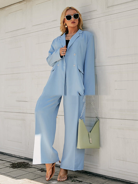 Long-Sleeve Double-Breasted Collared Printed Coat