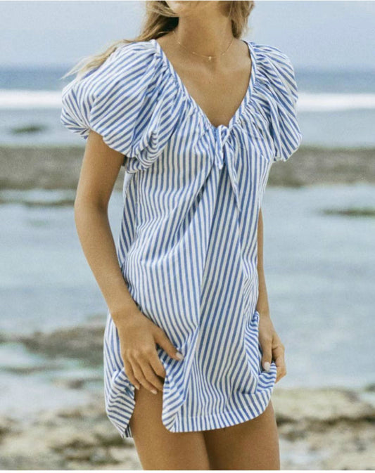V-Neck Raglan Sleeve Striped Printed One-Piece Dress