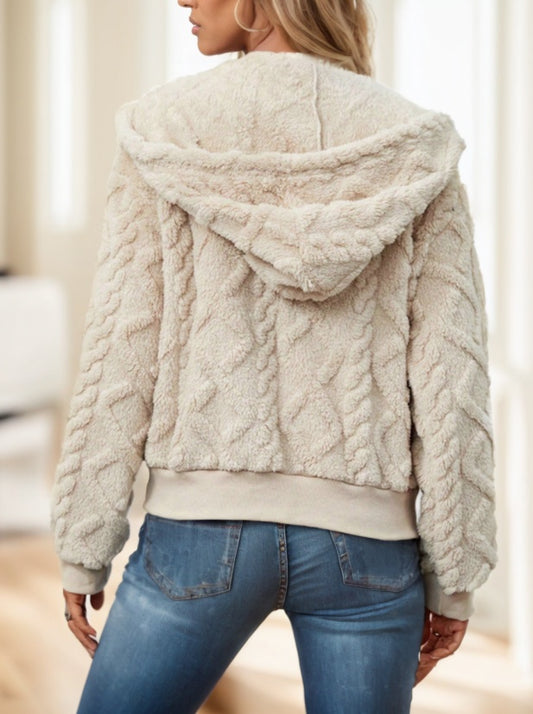 Zip Up Drop Shoulder Hooded Teddy Jacket