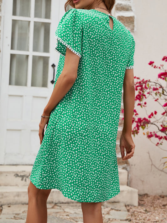 Leopard Square Neck Short Sleeve Slit Mini Dress