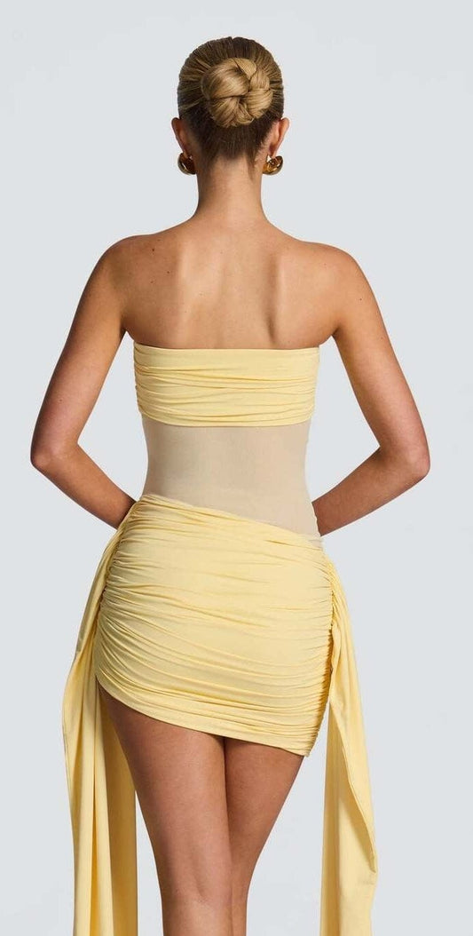 Elegant Mesh Dress Pleated Slit Hemline Evening Gown