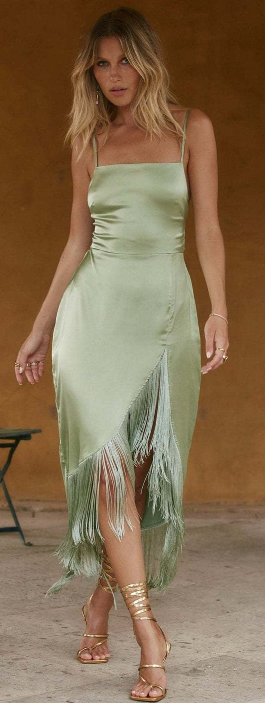 Round Neck Tassel Lace Dress Tulip Sleeve