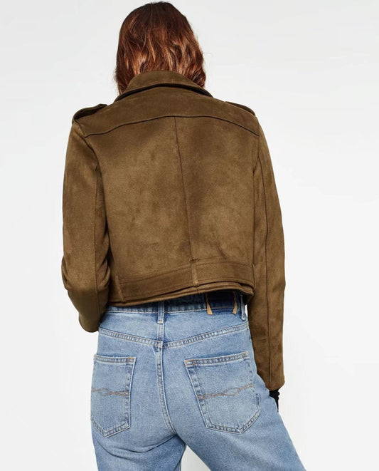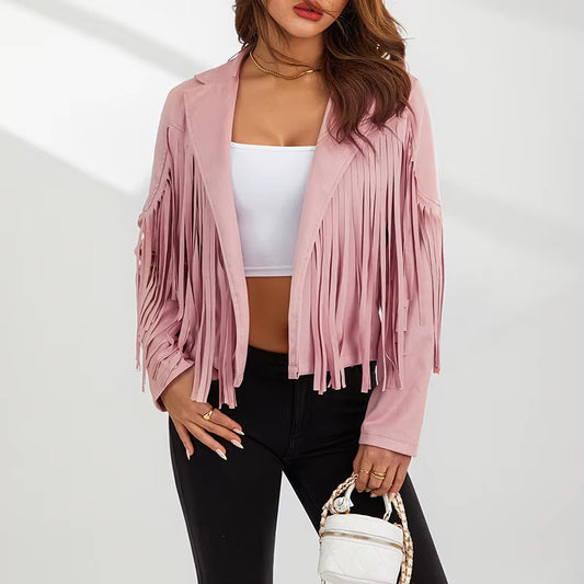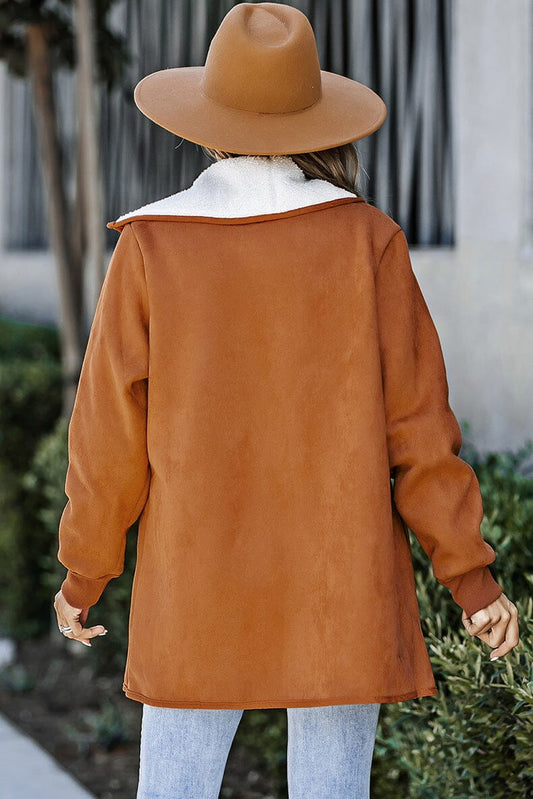 Pure Suede Jacket Long Loose Lapel Coat with Long Sleeves
