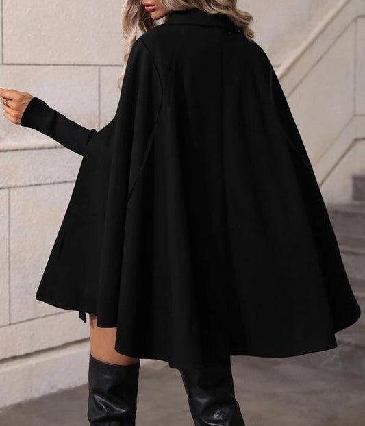 Solid Color Cloak Trench Coat Double Breasted Batwing Sleeve Long Coat with Slit