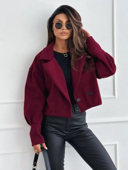 Lapel Contrast Paneled Long Sleeve Woolen Jacket
