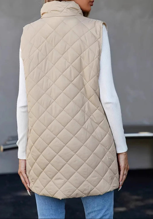 Stand-Up Collar Quilted Sleeveless Jacket