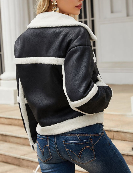 Autumn & Winter Lamb Fur Collar Jacket Stitching Outerwear