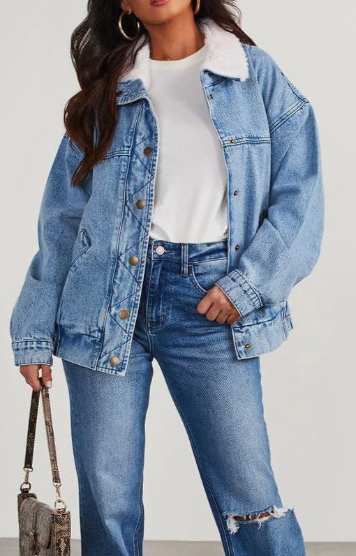 Denim Jacket with Fur Collar
