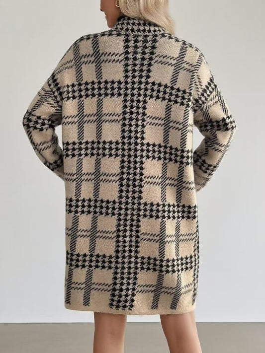 Houndstooth Knitted Long Cardigan Stylish Knit