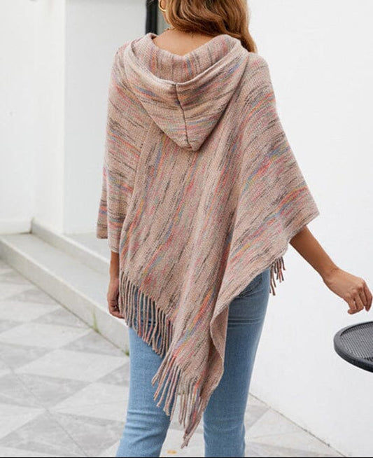 Hooded Striped Cape Tassel Shawl Poncho