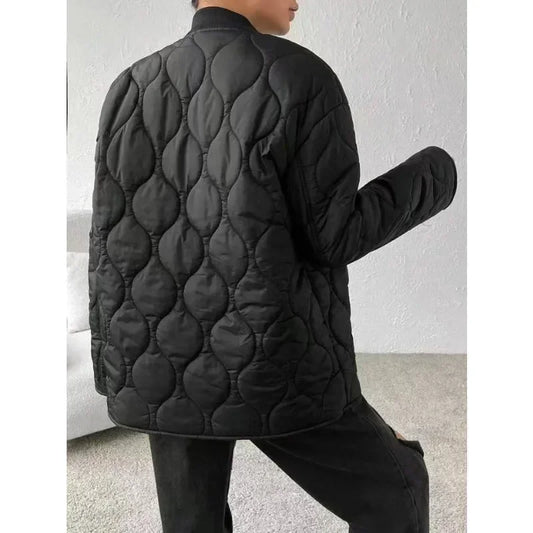 Fashionable Quilted Lightweight Jacket Warmly Padded Outwear with Button Down Front
