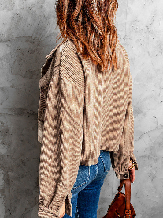 Corduroy Single Breasted Lapel Pocket Shirt Jacket
