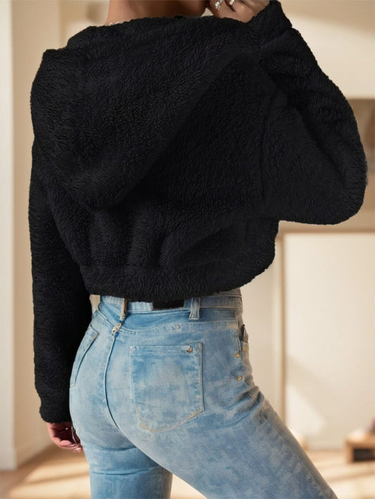 Zip Up Drop Shoulder Hooded Teddy Jacket