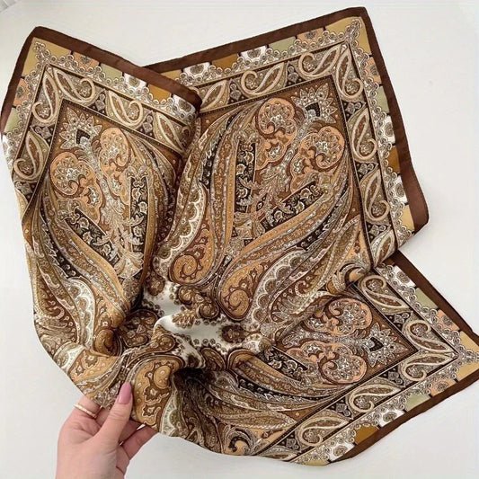 Vintage Paisley Houndstooth Square Scarf Thin Silk