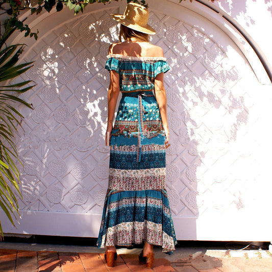 Floral Two-piece Off-shoulder Sleeve Top Mini Skirt Set
