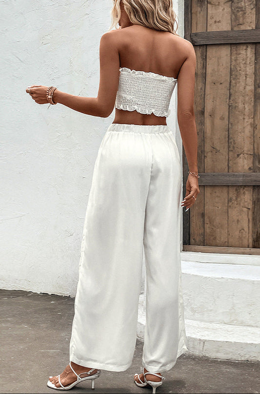 Ruffled Vest & Long Wide Trousers Set Sleeveless Midriff Two-Piece