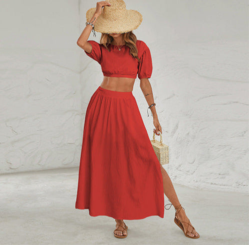 Two-Piece Outfit Solid Midi Skirt Fashion Set