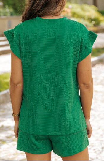 V-Neck Lace-Trim Blouse & Matching Shorts Set