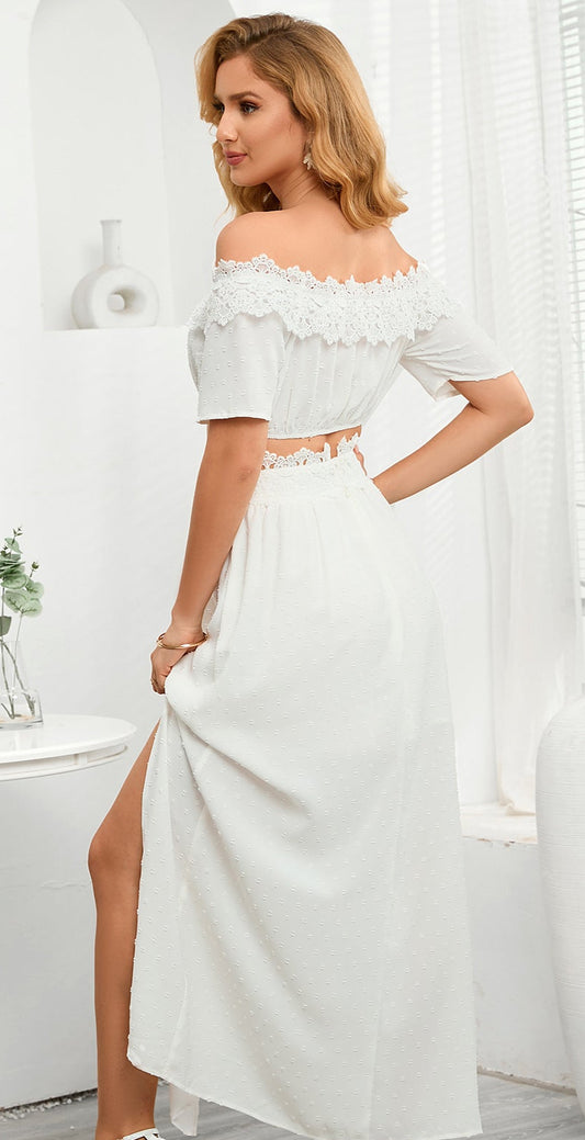 Two-Piece Set One-Shoulder Crop Blouse & High-Waist Skirt
