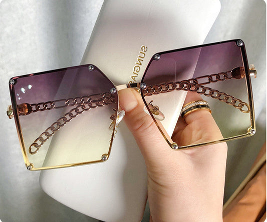 Rimless Sunglasses With Diamond-Studded Polygonal Sunglasses