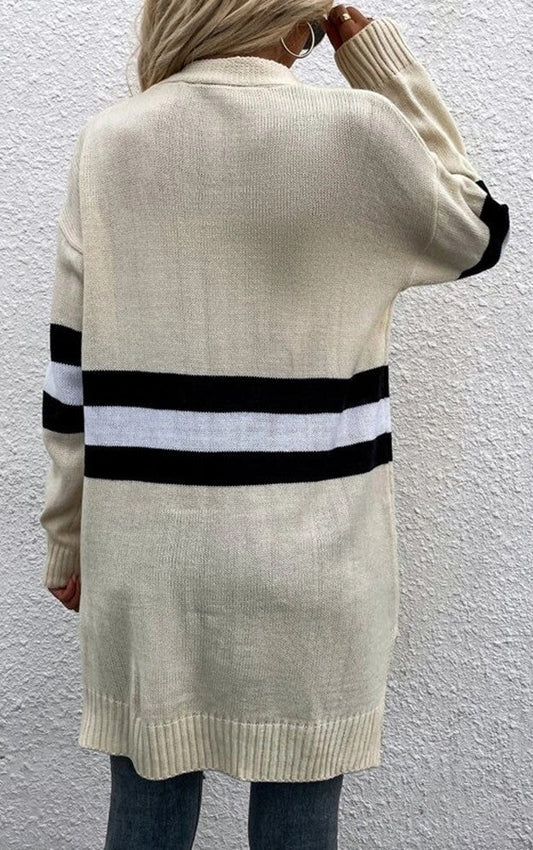 Shawl Cloak Sweater Striped Fringe Hem Coat Cardigan
