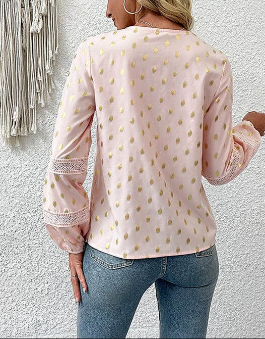 Polka Dot Blouse Hollow Lace Long Sleeve V-Neck