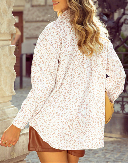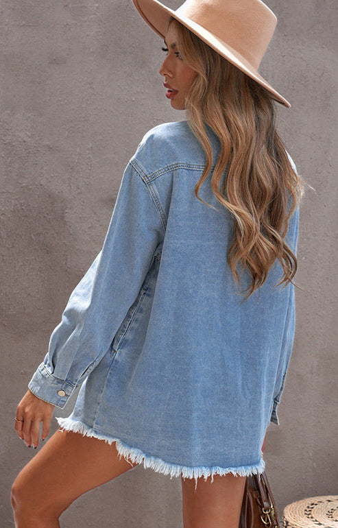 Mid-Length Denim Shirt Long Sleeve Lapel Solid Top