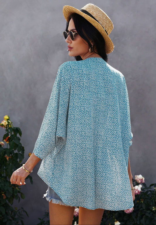 Three-Quarter Sleeve Floral Chiffon Shirt Elegant