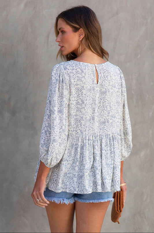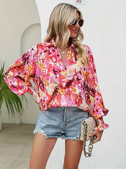 Floral Print Lantern Sleeve Loose Blouse