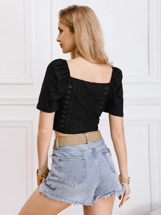 Lace Stitching Big V-Neck Short Sleeve Lace Top