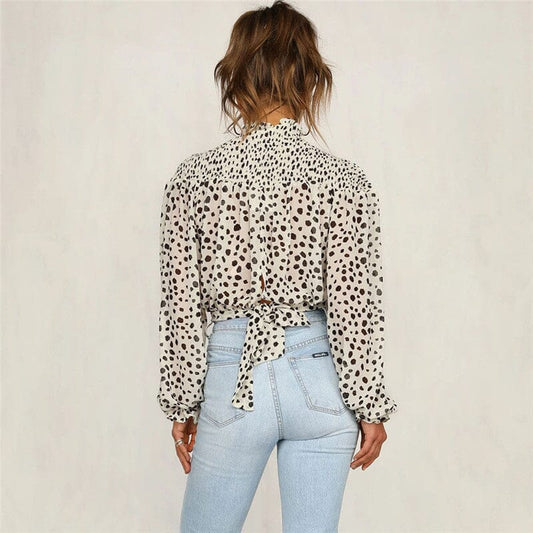 Polka Dot Chiffon Blouse – Tie Back High Neck Top