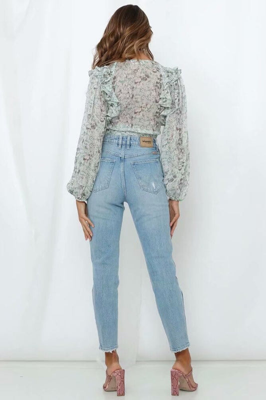 Ruffled V-neck Long-sleeved Bottoming Blouse