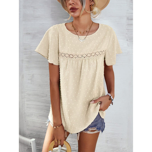 Short Sleeve Summer Top Blouse Solid Color Lace