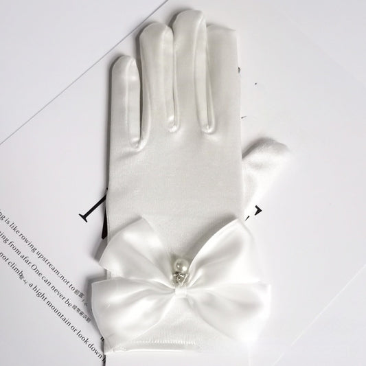 Satin Bow Princess Gloves with Dangling Beads