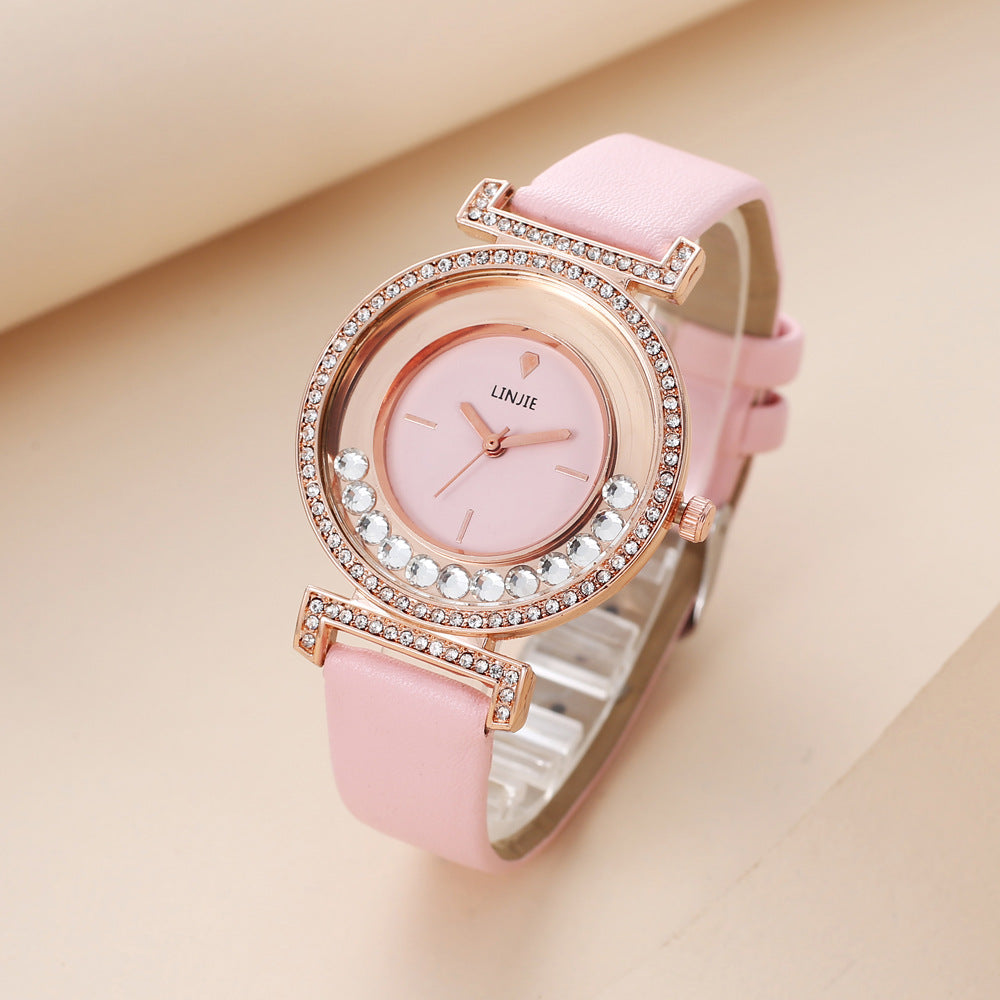 This stylish fashion watch set features a durable zinc alloy case and precise Pearl quartz movement. The ordinary glass mirror ensures clear visibility, while the set comes in two elegant color options: pink and steel. Perfect as a gift, the package includes a watch, perfume, air cushion, and wallet, making it a complete accessory set for daily use or special occasions
