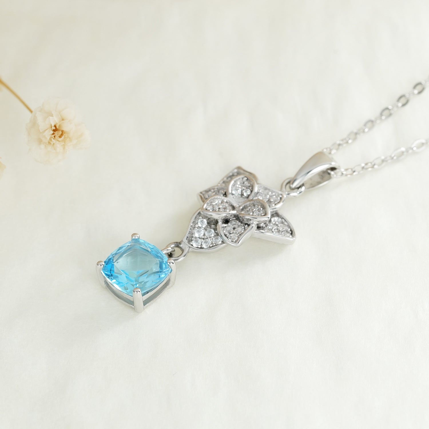 Elegant 925 Silver Flower Pendant with Swiss Blue Topaz