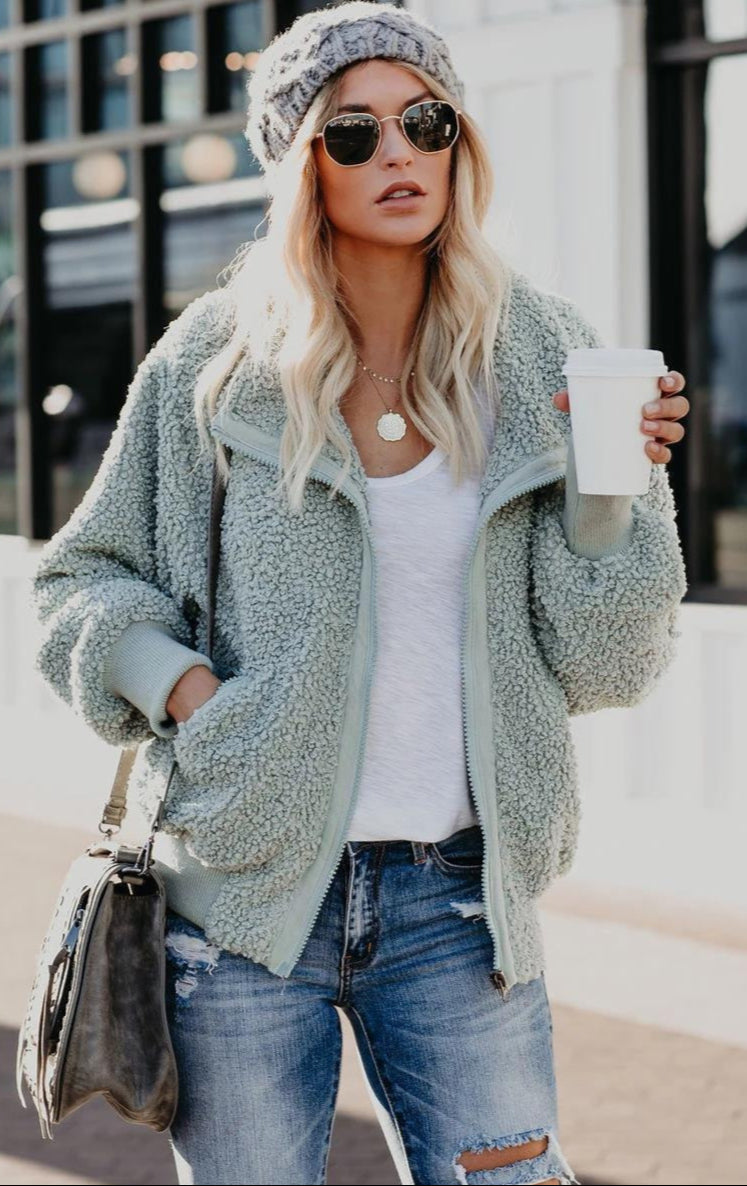 Lamb Velvet Zip-Up Casual Jacket Soft Warm