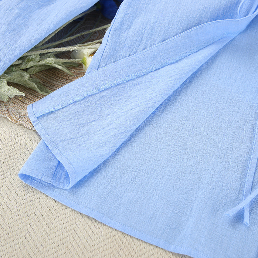 Cotton Loungewear Set Long Sleeve Cardigan with Lace-Up Shorts