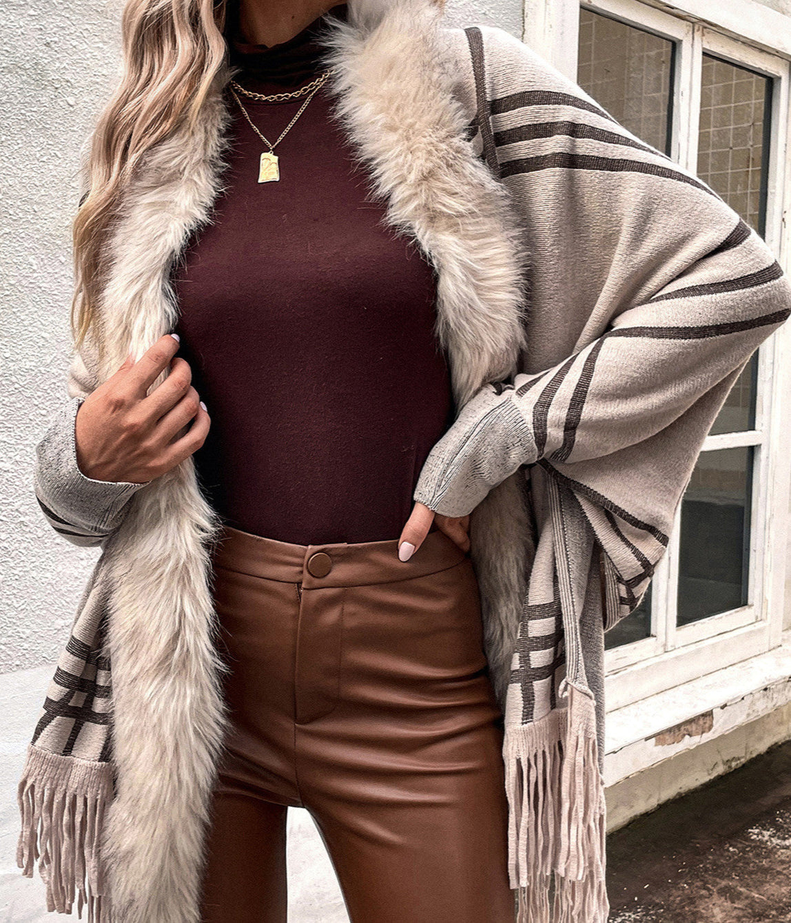 Mosaic Plaid Sweater Shawl Knit Cardigan