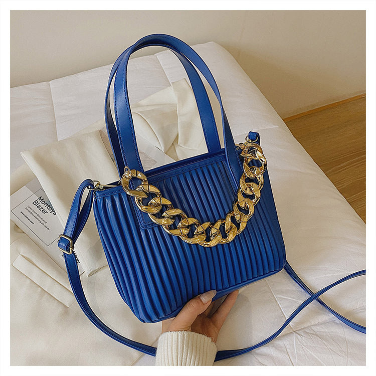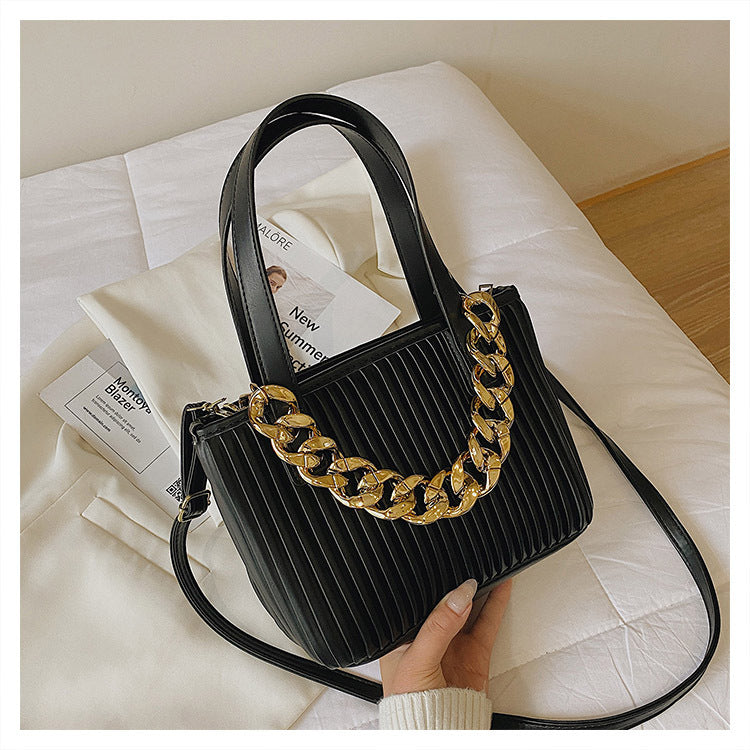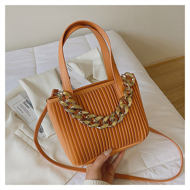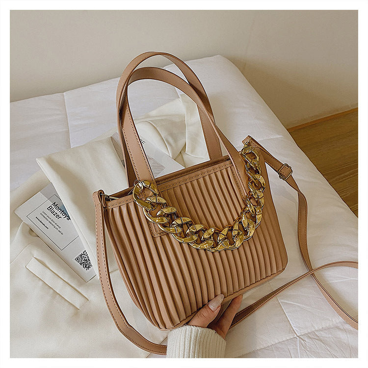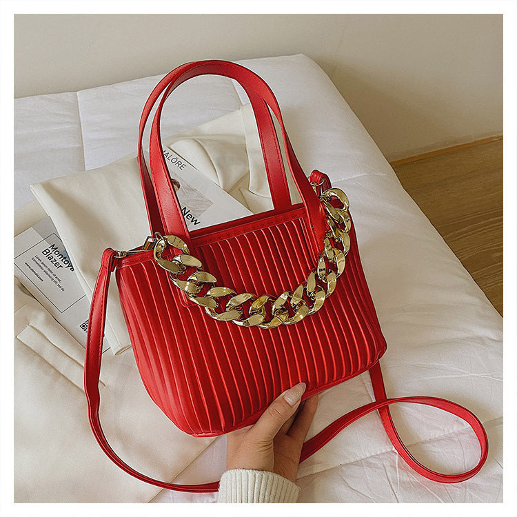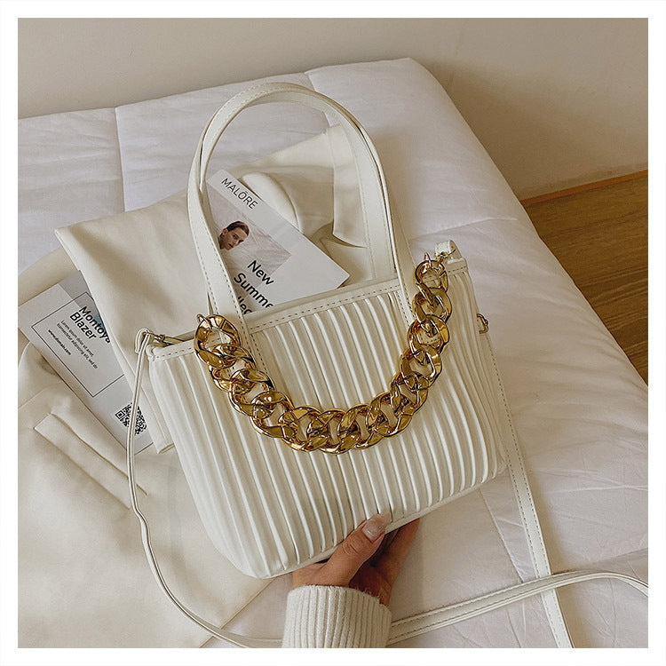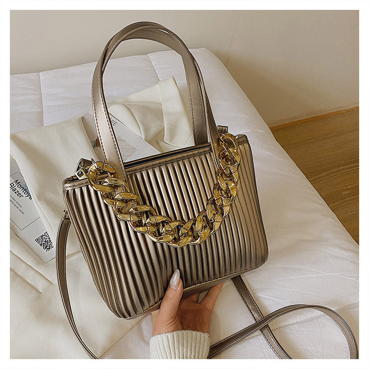Pleated Handbag Chain Embellished One-Shoulder Span